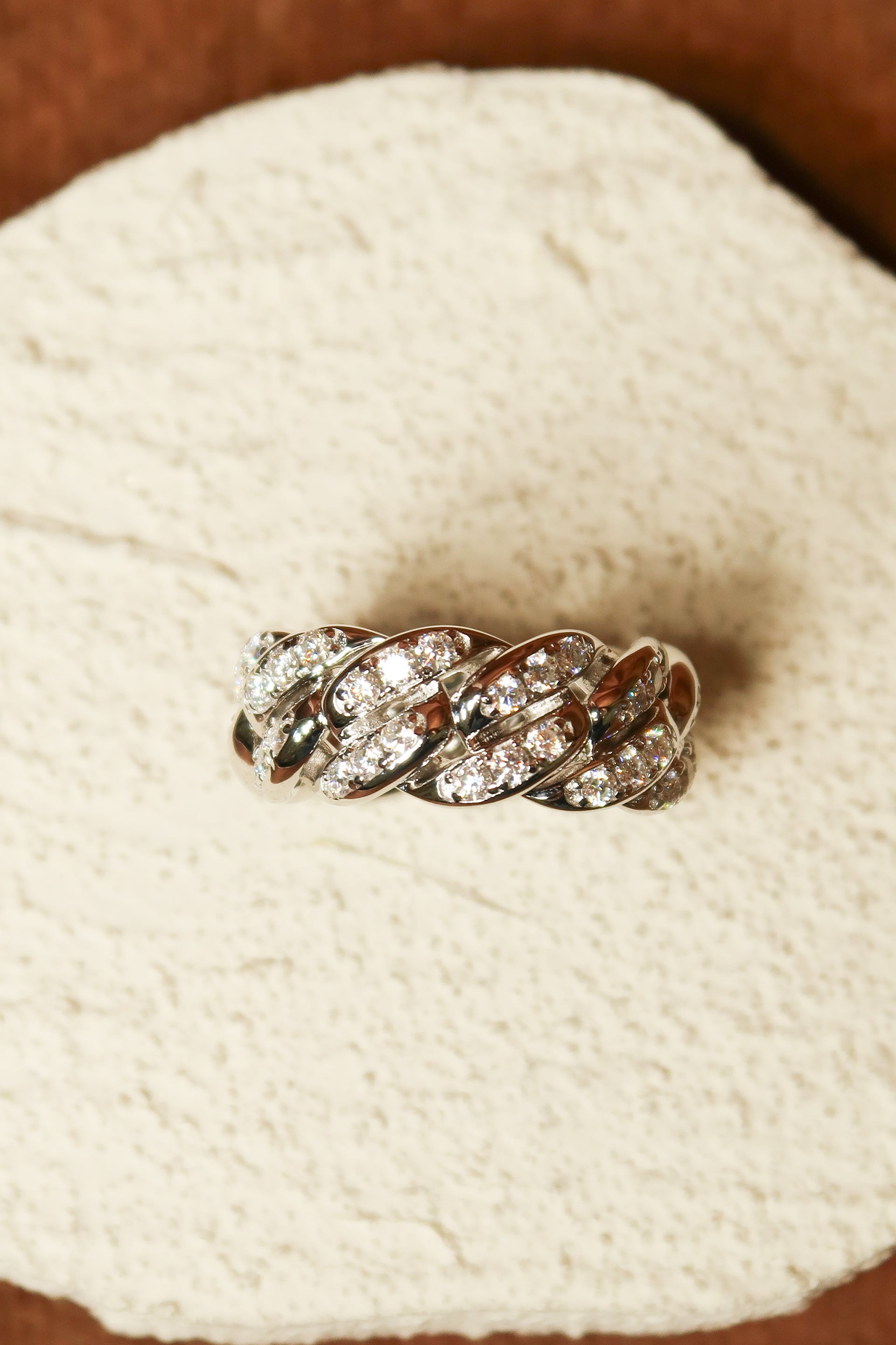 Elevated edge meets timeless sparkle ✨ The Chic Link Eternity Band features a bold braided-link design, handset with brilliant moissanite stones that rival diamonds in fire and shine. Crafted in solid .925 sterling silver, this band is the perfect mix of luxe and modern — designed to pass the diamond test while turning heads.