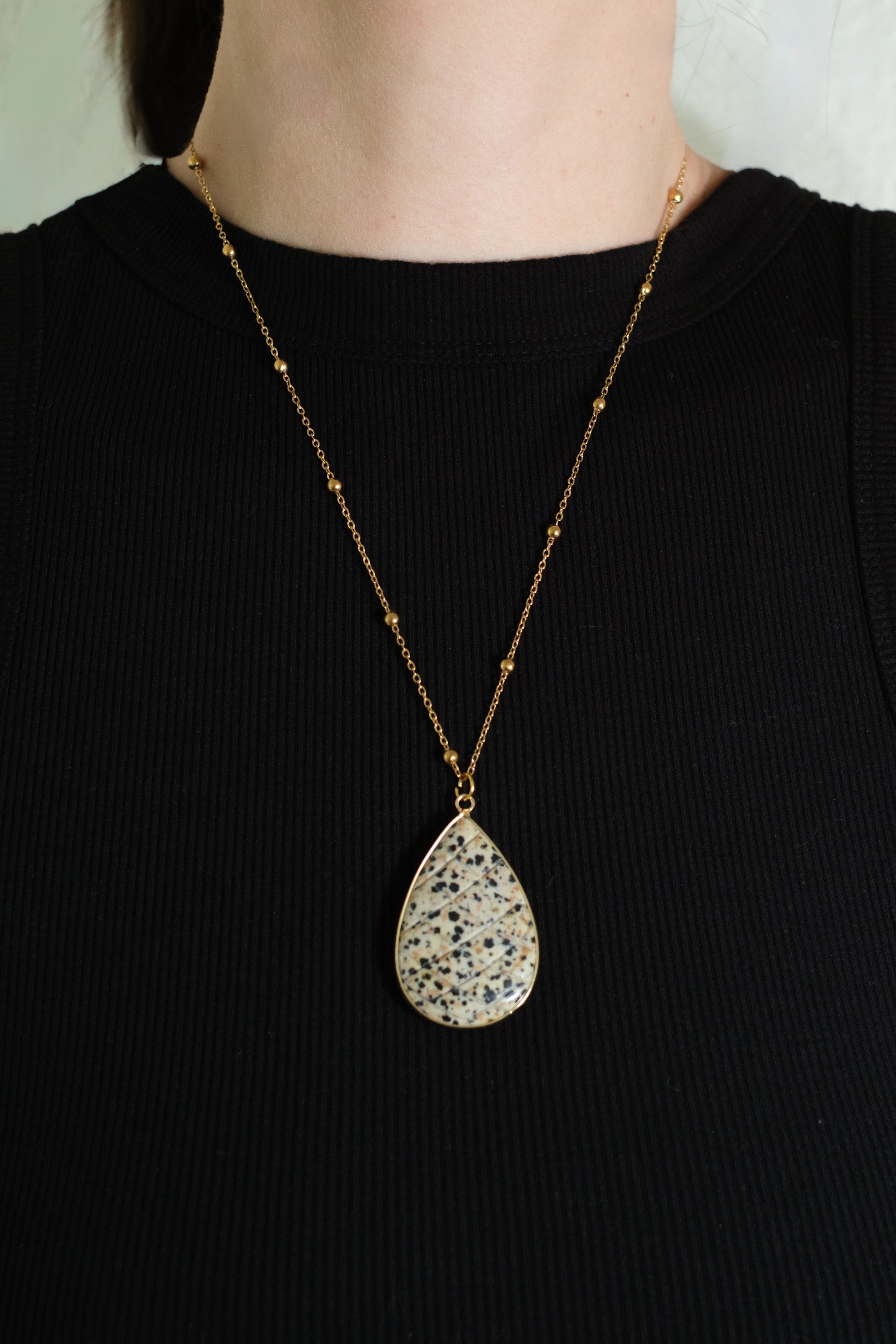 Command attention with nature’s artistry. The Biology Charm is crafted from genuine Dalmatian Jasper, shaped into a dramatic tear-drop silhouette that radiates personality and presence. Each piece showcases the stone’s signature creamy backdrop speckled with bold black spots—no two are exactly alike, making every charm uniquely yours.