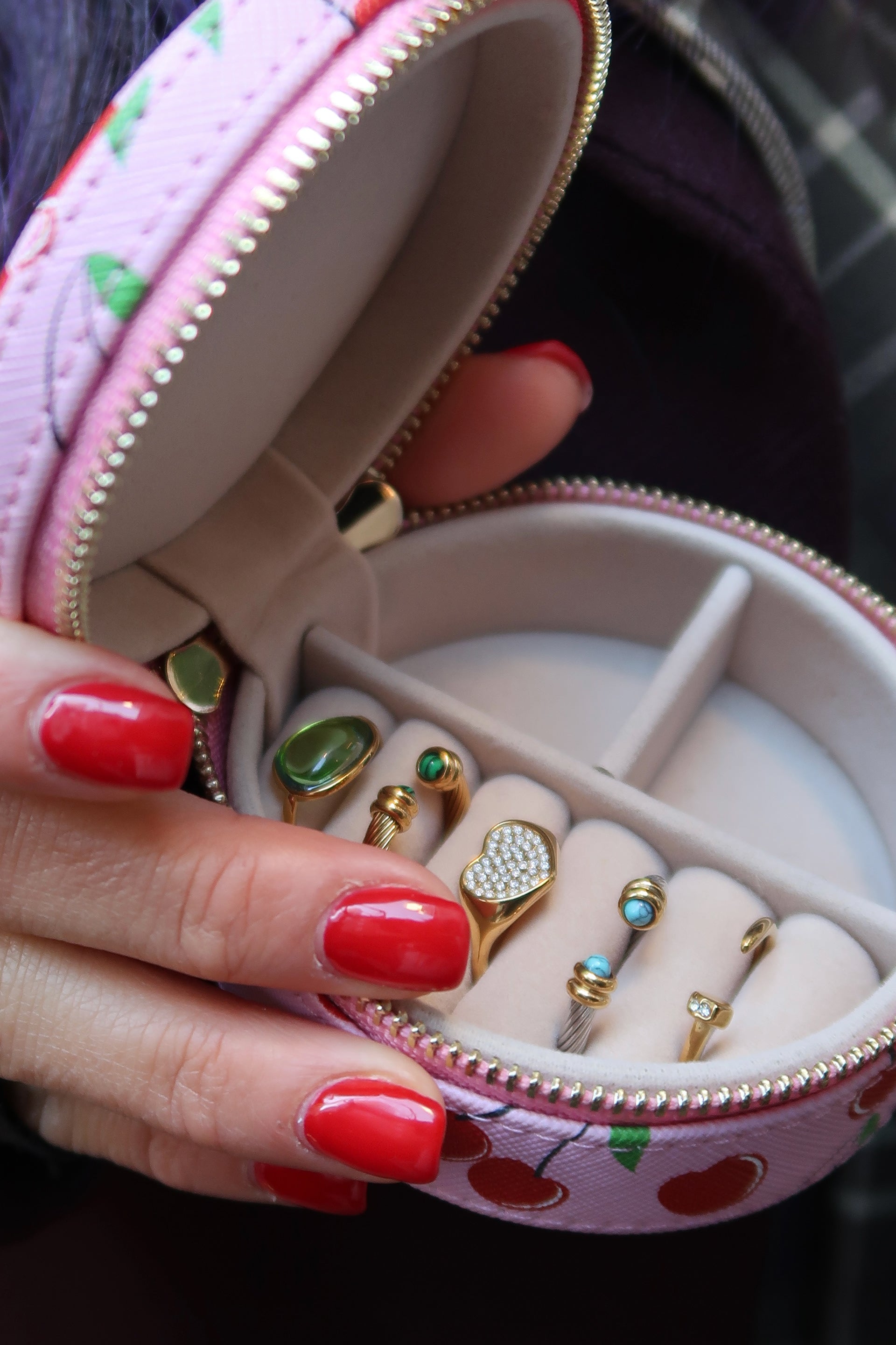 Unwrap pure luxury with this stunning set of five golden rings, showcased in our chic Cherry Jewelry Box. Each design is waterproof and tarnish-resistant, made to shine season after season.