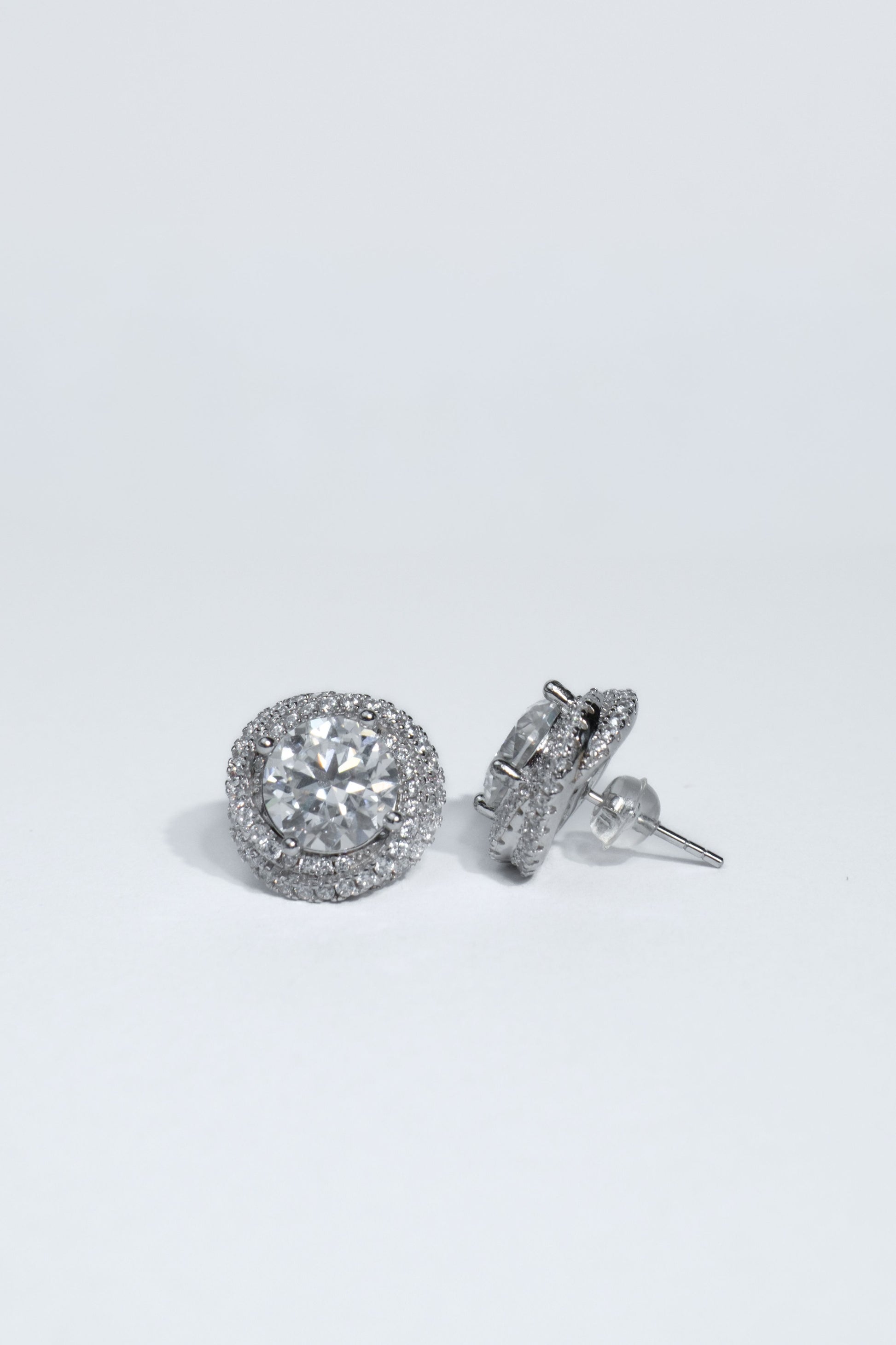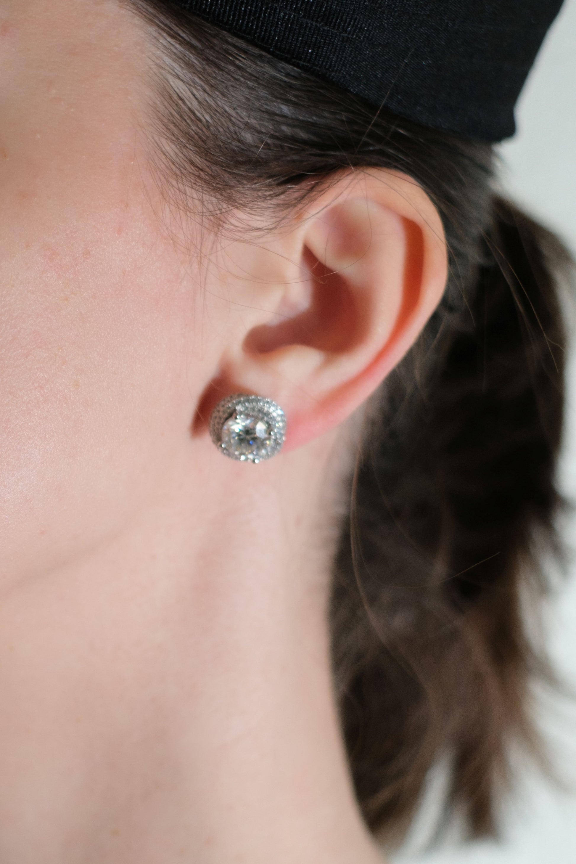 Introducing the Dynasty Moissanite Stud Earrings, a statement design that blends classic studs with elevated luxury. Each earring features a striking 3 carat round moissanite center stone, framed by a multi-band pavé setting that amplifies the brilliance from every angle.