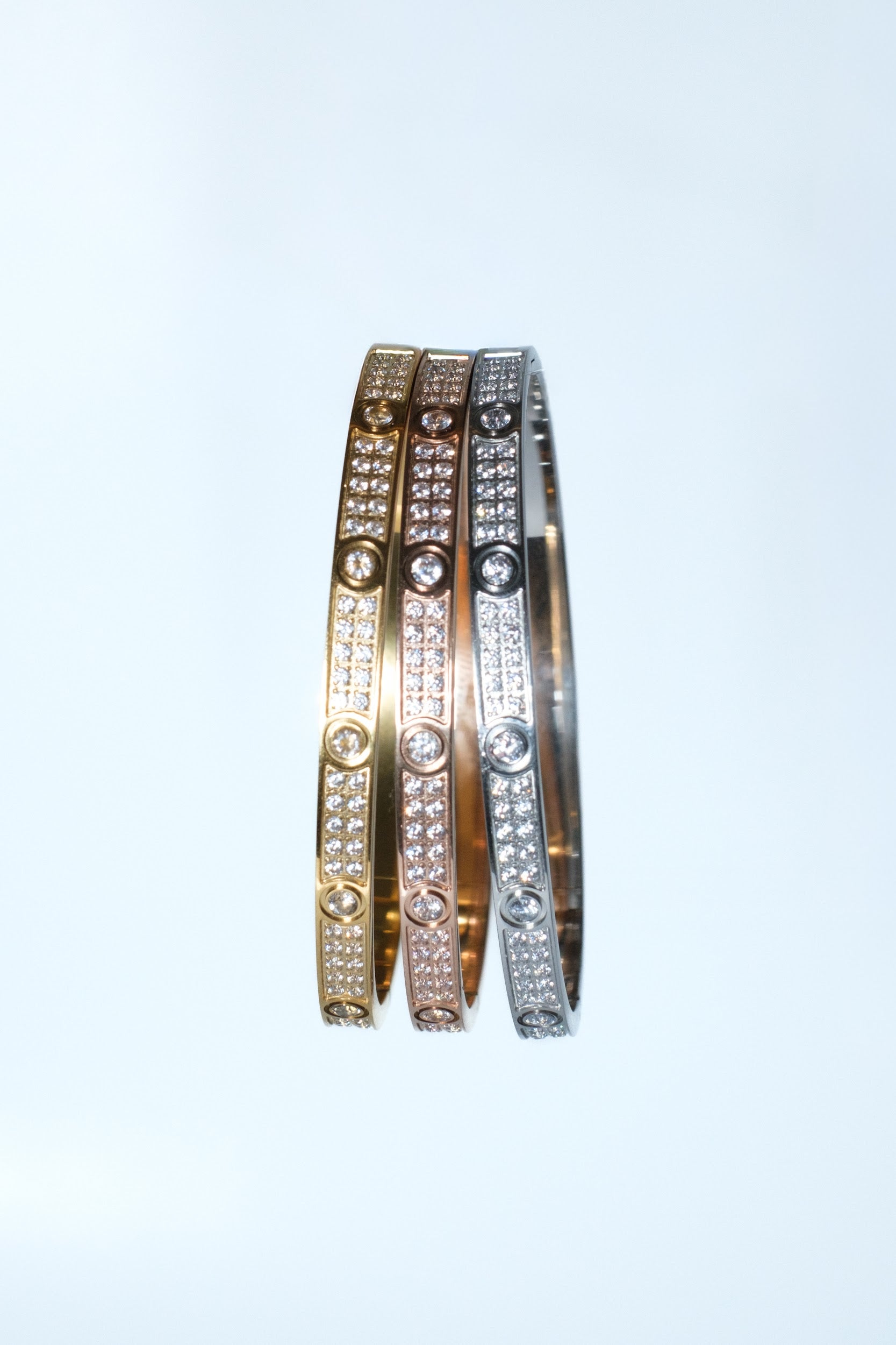 Elevated Full Crystal Bangle 316L Stainless Steel Trio