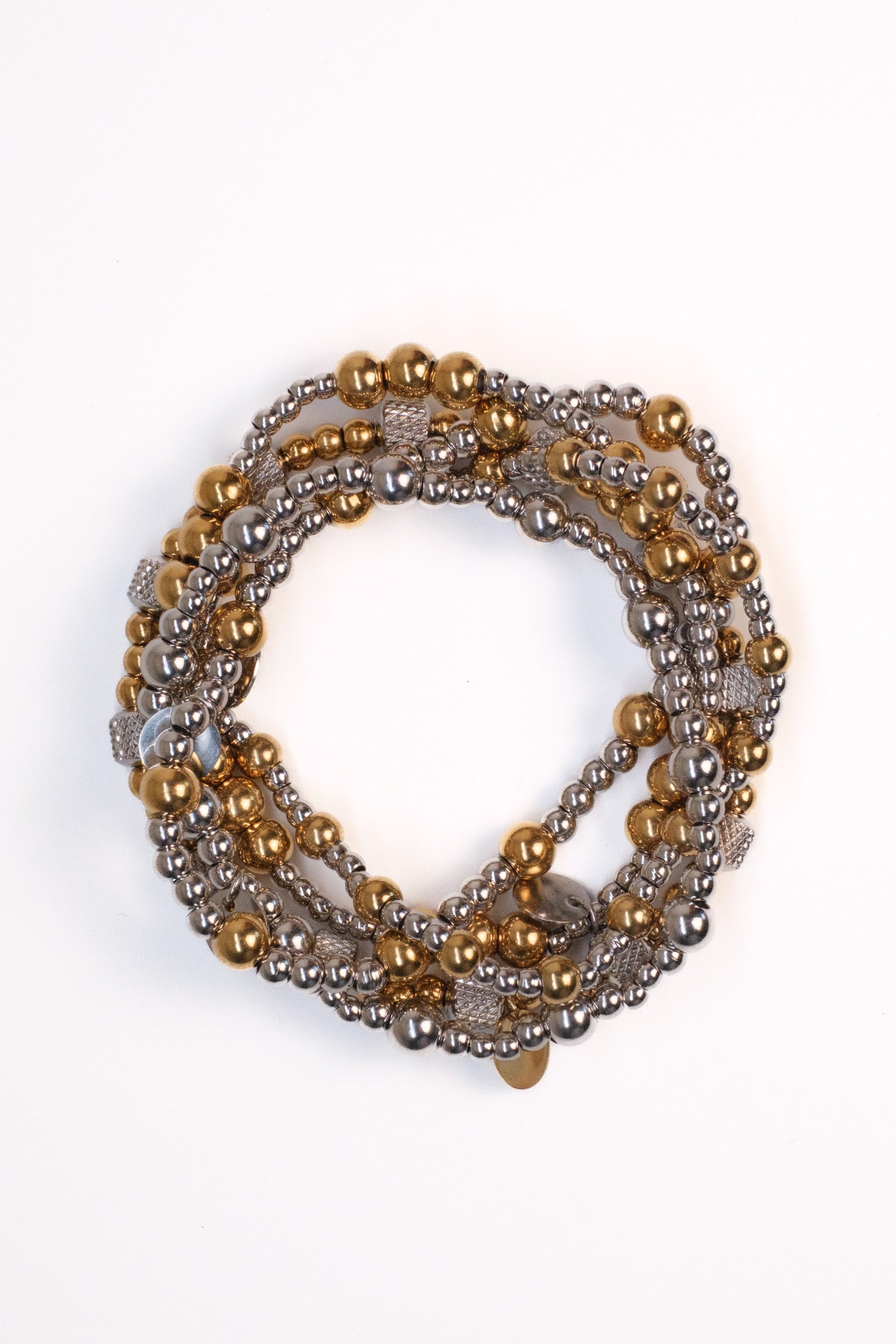 This curated set of five beaded bracelets blends mixed metals for a layered look that feels effortless yet intentional. Each piece works together to represent strength, versatility, and harmony, creating a stack that elevates your everyday style while standing strong on its own.