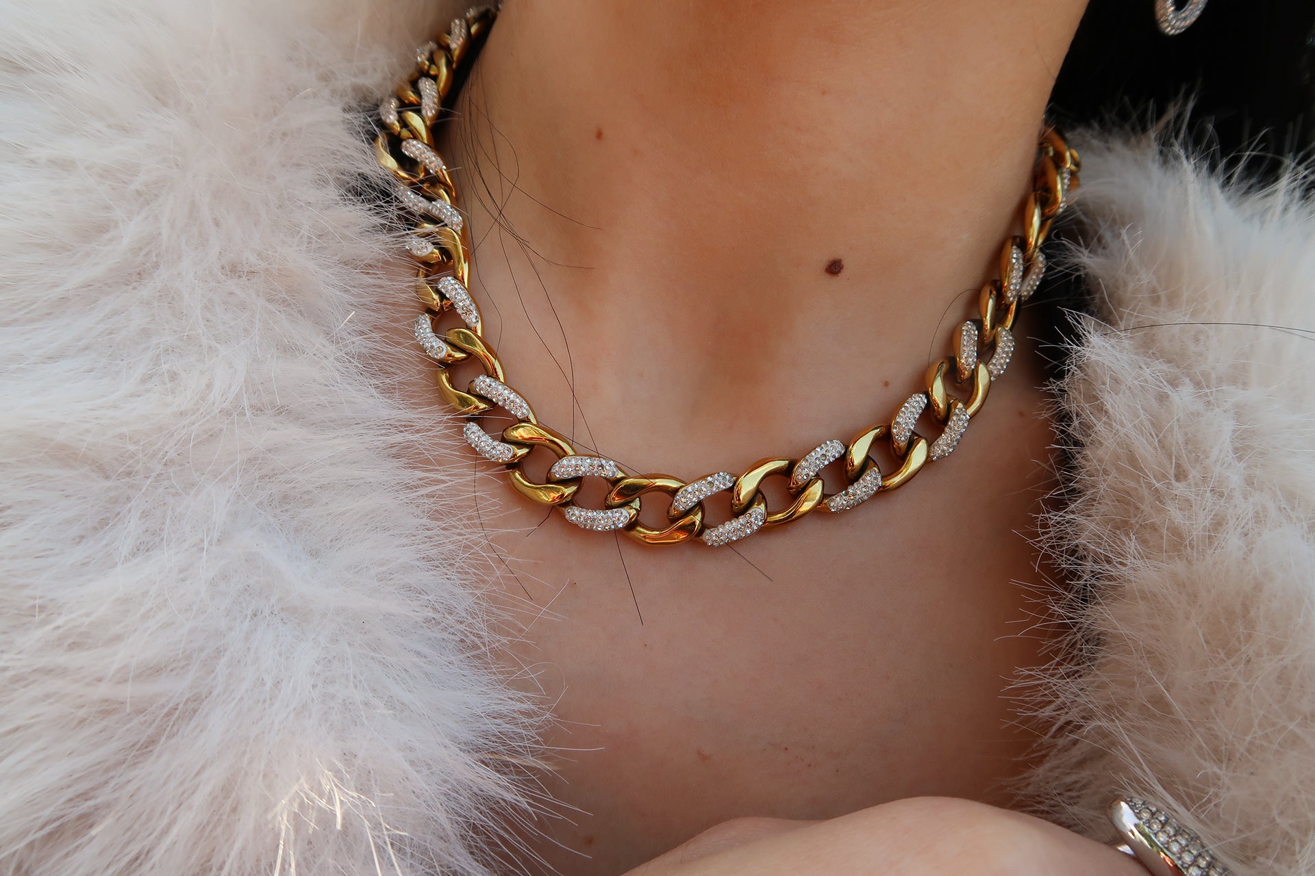 Golden Affair Crystal Cuban Link 316L Stainless Steel Crystal Link Duo