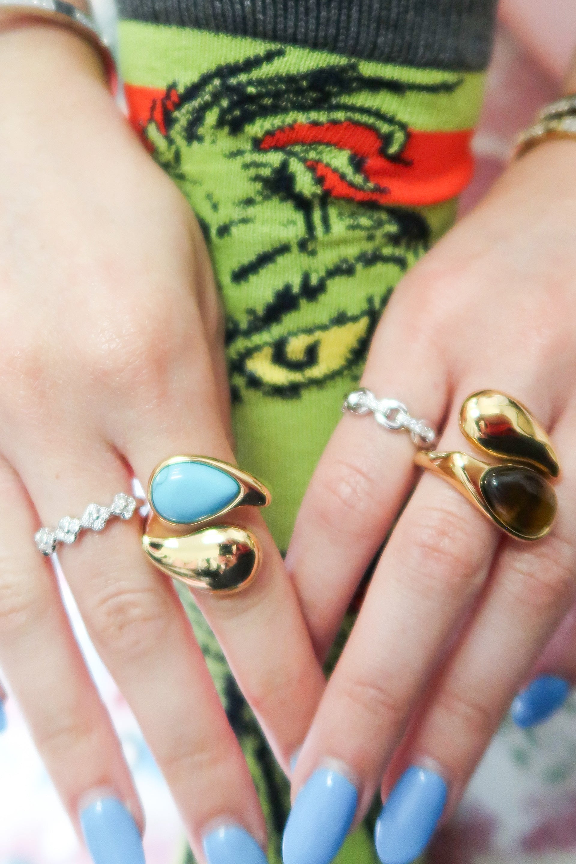 Available in two powerful variants, Turquoise and Tiger Eye, each ring brings its own energy. Turquoise adds a vibrant pop of color with an effortless, bohemian edge, while Tiger Eye delivers rich, golden-brown tones known for confidence and strength.
