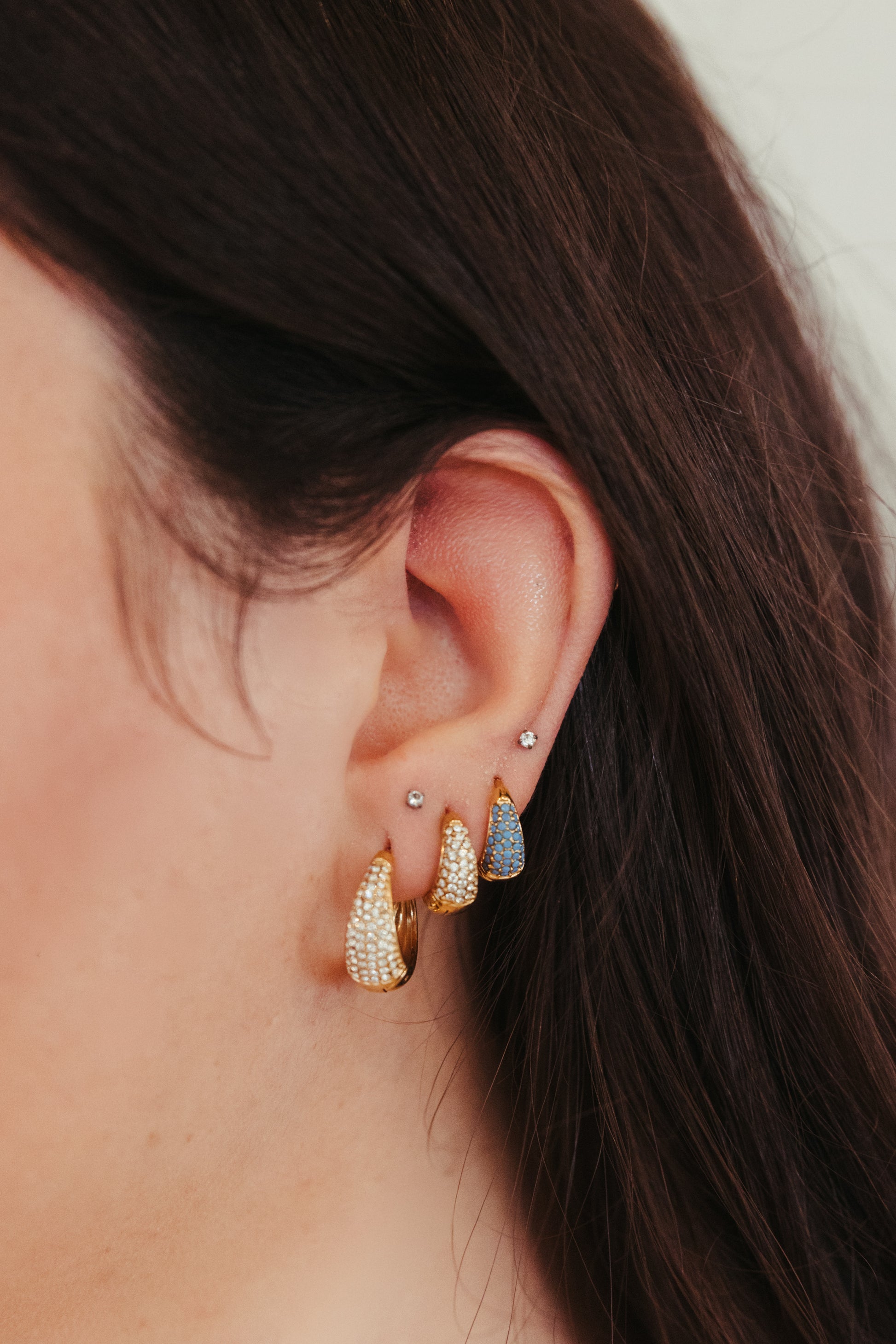 These Mini Icon 316L Stainless Steel Crystal Huggies combine sleek elegance with versatile style. Available in medium or small sizes, choose from striking gold blue, classic silver blue, luxurious gold diamond, or vibrant gold blue finishes. Crafted from durable stainless steel and sparkling crystals, these earrings add a subtle yet sophisticated touch to your daily wear or special occasions.