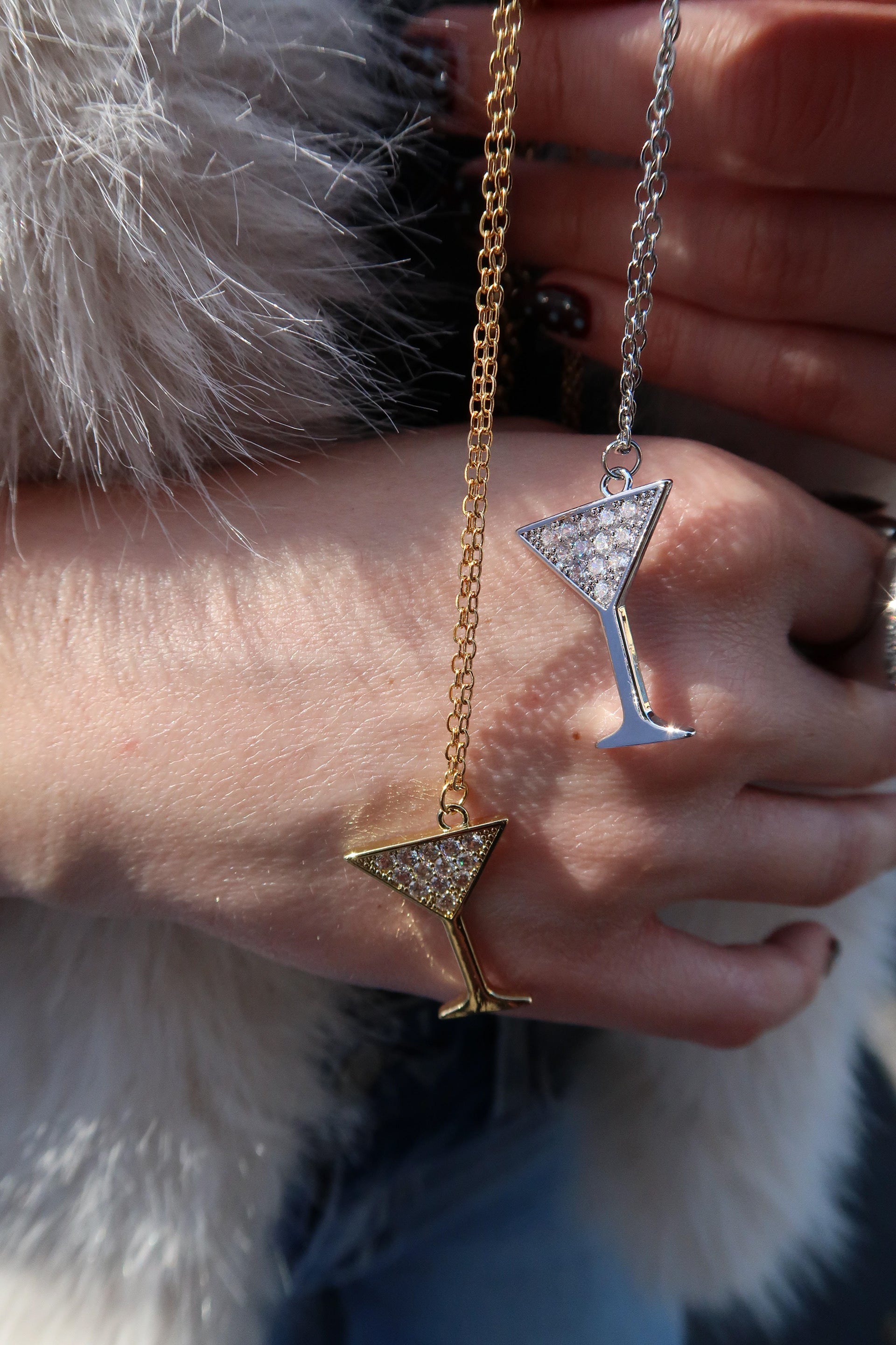 Add a splash of class to your fashion sense with this 316L stainless steel Nightcap Martini necklace! Adjustable up to 18 inches for the perfect fit. The standout Martini glass pendant is dazzlingly adorned with eye catching 5A zircon stones because every hour deserves a little glam. Cheers to effortless chic with a playful twist!
