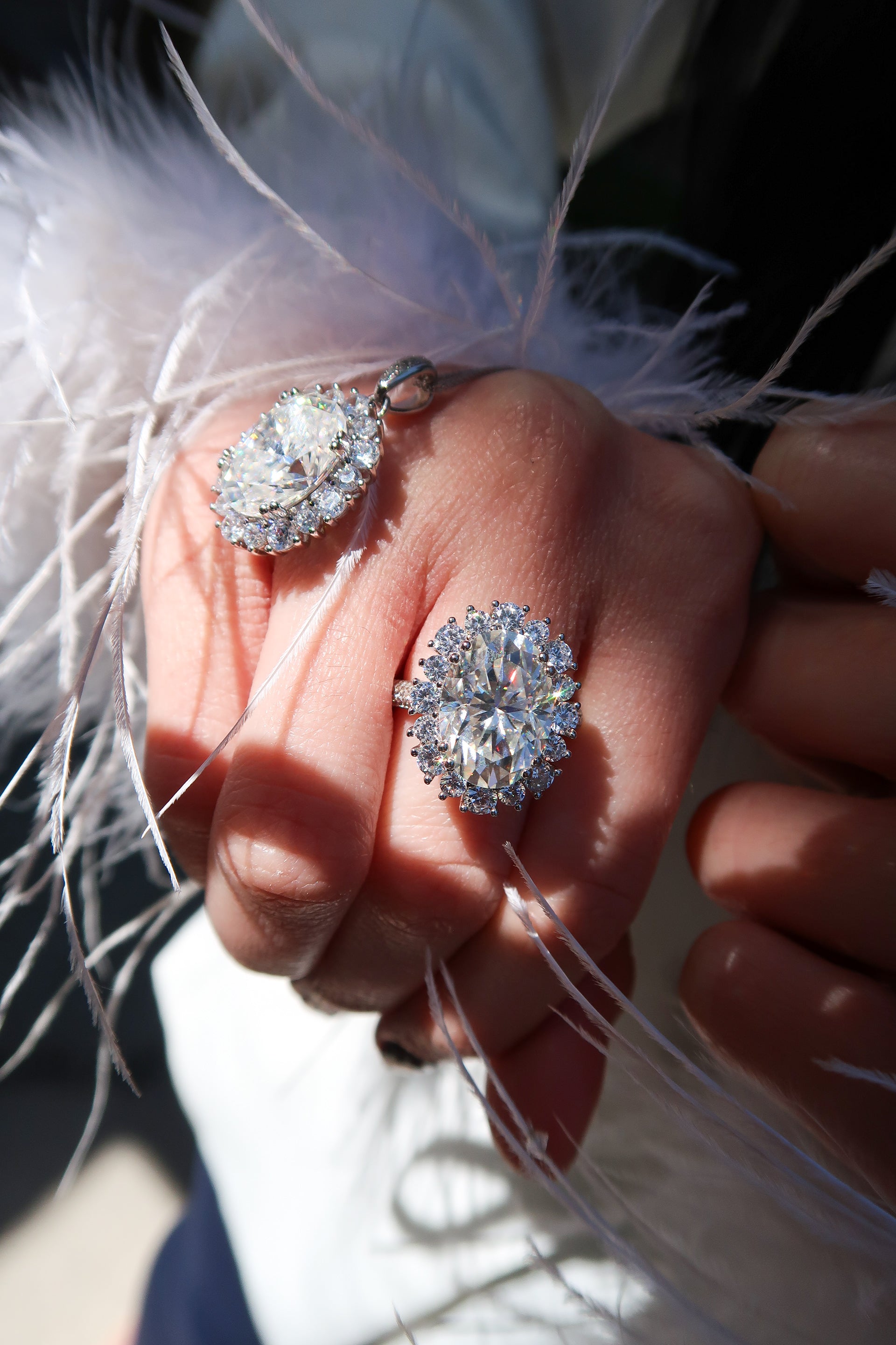 • 9 Carat GRA-Certified Moissanite Ring and 9 Carat Necklace each