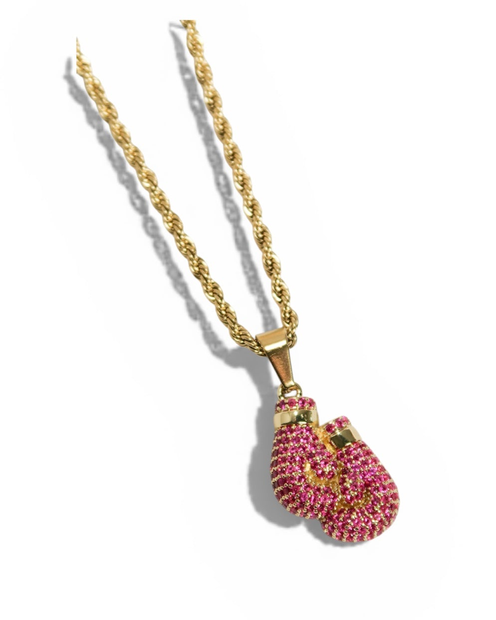 Unbroken Spirit Pink Crystal Boxing Gloves 316L Stainless Steel Necklace